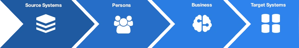 Personen: Daten aus dem Quellsystem (z. B. Rolle, Abteilung, Standort) werden standardisiert im sogenannten Identity Vault gespeichert. Das schafft eine zentrale, konsistente Basis für alle nachfolgenden Provisioning-Prozesse.
