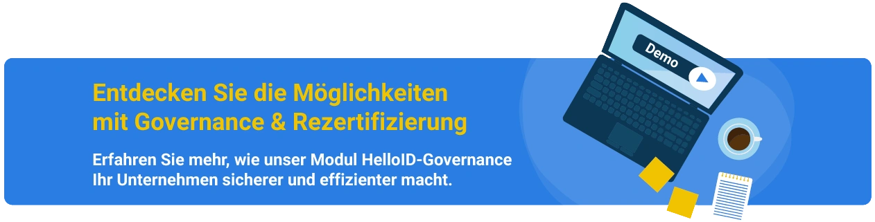 HelloID Governance erweitert die Funktionen von HelloID Provisioning und HelloID Service Automation um fortschrittliche Governance & Rezertifizierungs-Tools. Ihre IT-Richtlinien, die Sie mittels HelloID automatisiert und regelbasiert in Ihrem Netzwerk umsetzen, können Sie mit HelloID Governance kontinuierlich auswerten und somit wertvolle Einblicke gewinnen und Abweichungen beheben. Es hilft Ihrem Unternehmen, in einer Zeit, in der Compliance, Sicherheit und Effizienz von entscheidender Bedeutung sind, die Kontrolle zu behalten und Abläufe zu optimieren.