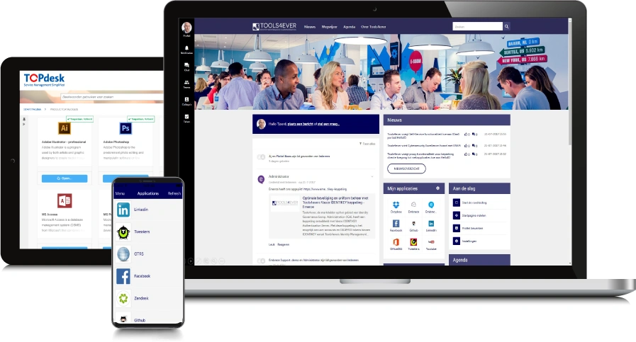 Viele Unternehmen konzentrieren sich auf den Arbeitsplatz 4.0: neue Kommunikationswege (Social Business), Wissensaustausch (Activity Stream) oder integrierte Zusammenarbeit (Agility Work). Um dabei eine optimale Employee Experience zu schaffen, setzen sie auf Social Intranet. Integrieren Sie HelloID nahtlos in Ihr Social-Intranet oder andere Plattformen wie z. B. IT-Service-Management-Systeme (ServiceNow, TOPdesk etc.).